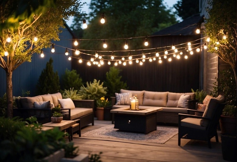 Bistro lights create a festive tone that feels timeless and joyful. Strings of small bulbs stretch from one spot to another. They can cross above a table or outline the edge of a deck. Their soft light brings laughter and ease. It makes the patio feel alive even on a quiet night. A gentle golden hue flatters every face and color. The air seems warmer and more intimate. The space becomes a blend of sparkle and calm. Every evening feels like an occasion.